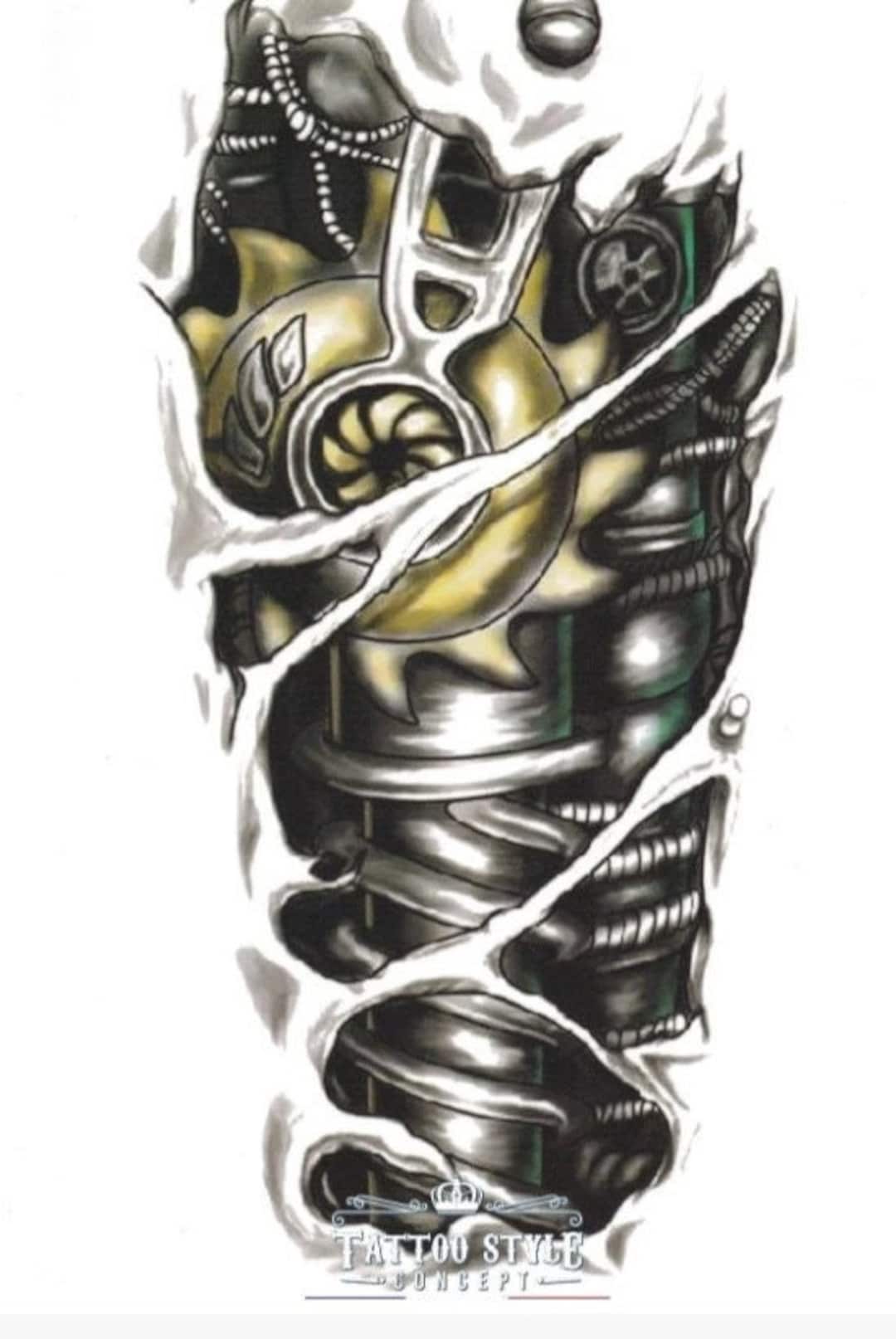Torn Limb Tattoo Biomechanical Cyborg Etsy Uk
